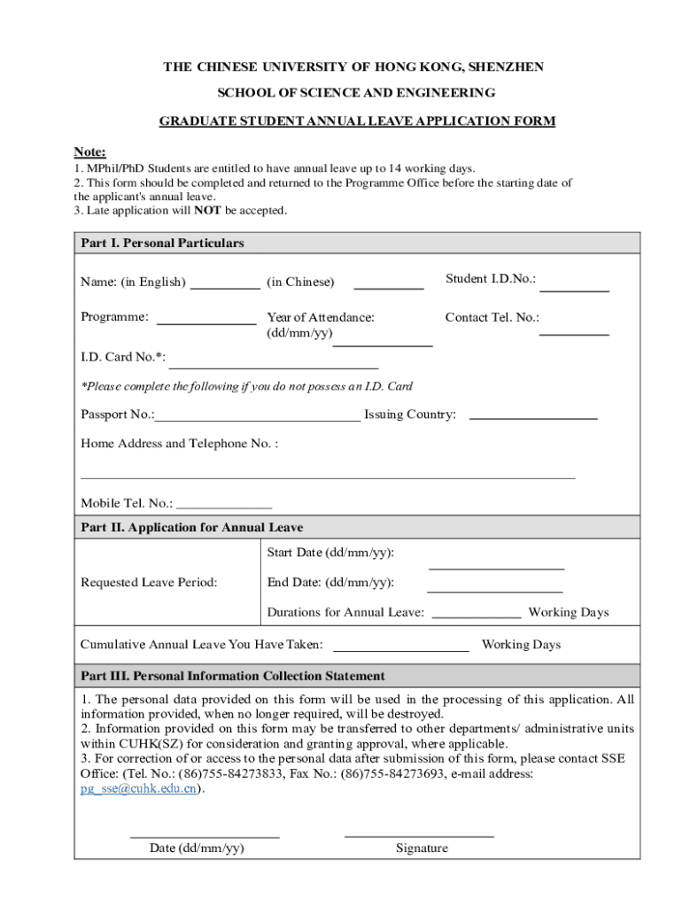 GRADUATE STUDENT ANNUAL LEAVE APPLICATION FORM