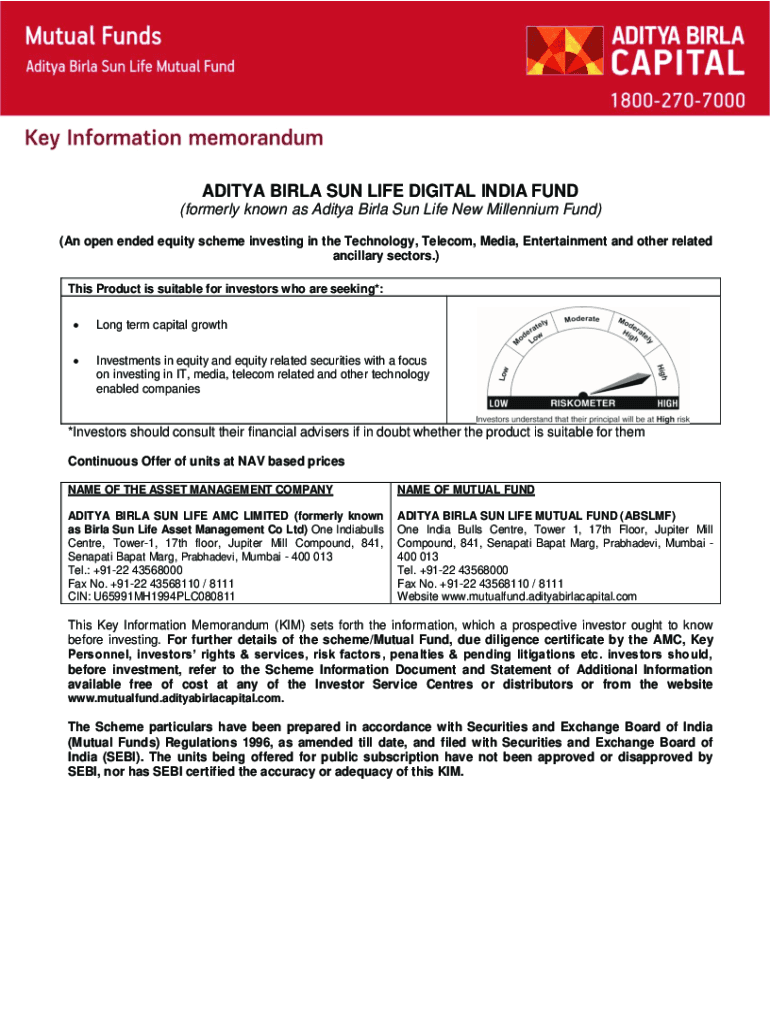 ADITYA BIR LA SUN LIFE DIGITAL INDIA FUND