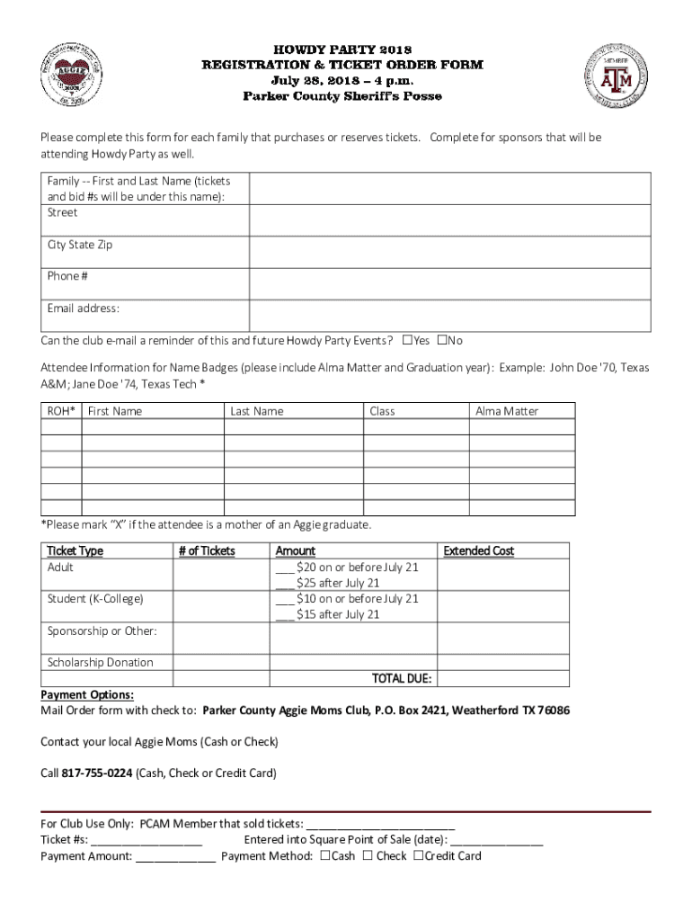 Please complete this form for each family that purchases or reserves tickets. Complete for sponsors that will be attending Howdy Party as well. Family First and Last Name (tickets and bid #s will