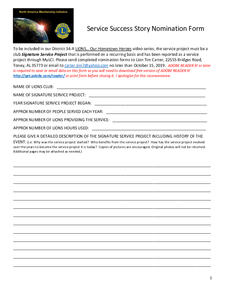 Get the free Nomination and Endorsement Form - mdalions