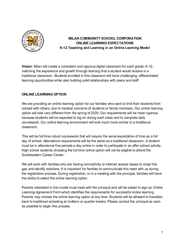 K12 Teaching and Learning in an Online Learning ModelVision: Milan will create a consistent and rigorous digital classroom for each