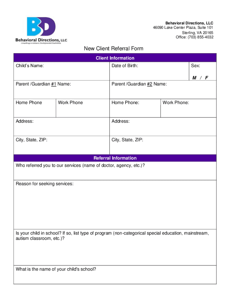 Get the free New Client Referral Form - Autism Treatment