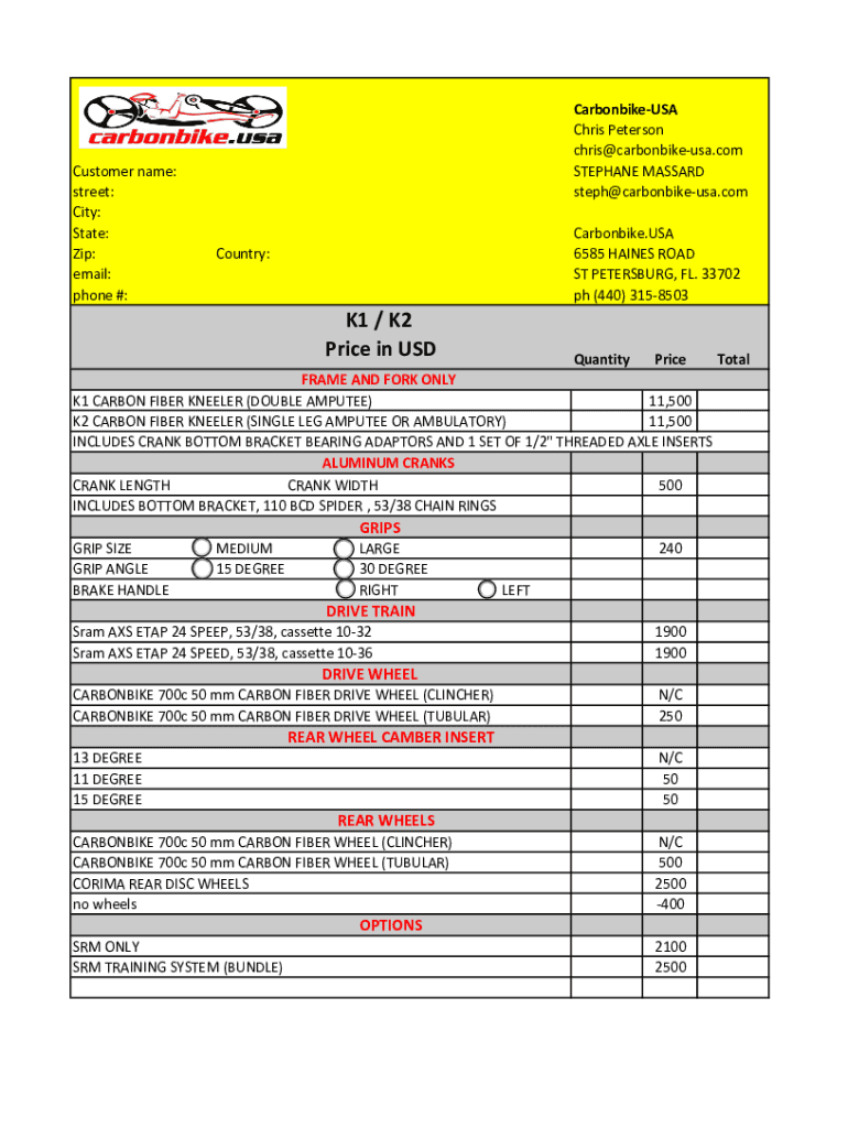 Get the free K1 / K2 Price in USD Quantity - carbonbike-usa.com