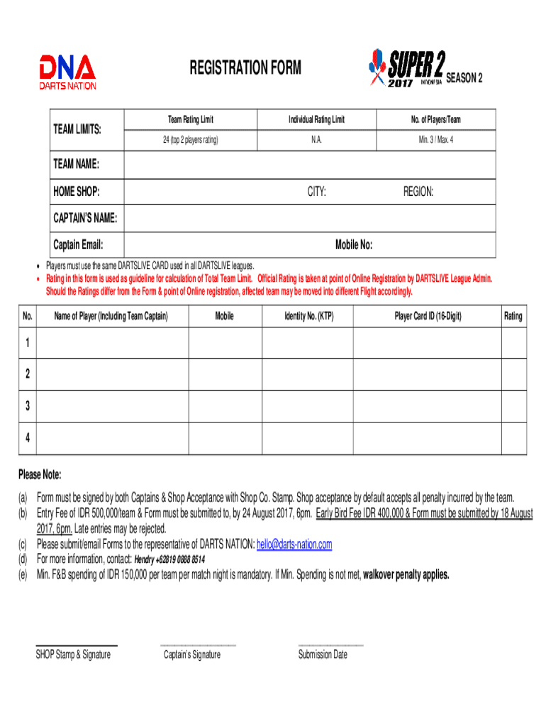 Get the free REGISTRATION FORM Division - DARTSLIVE