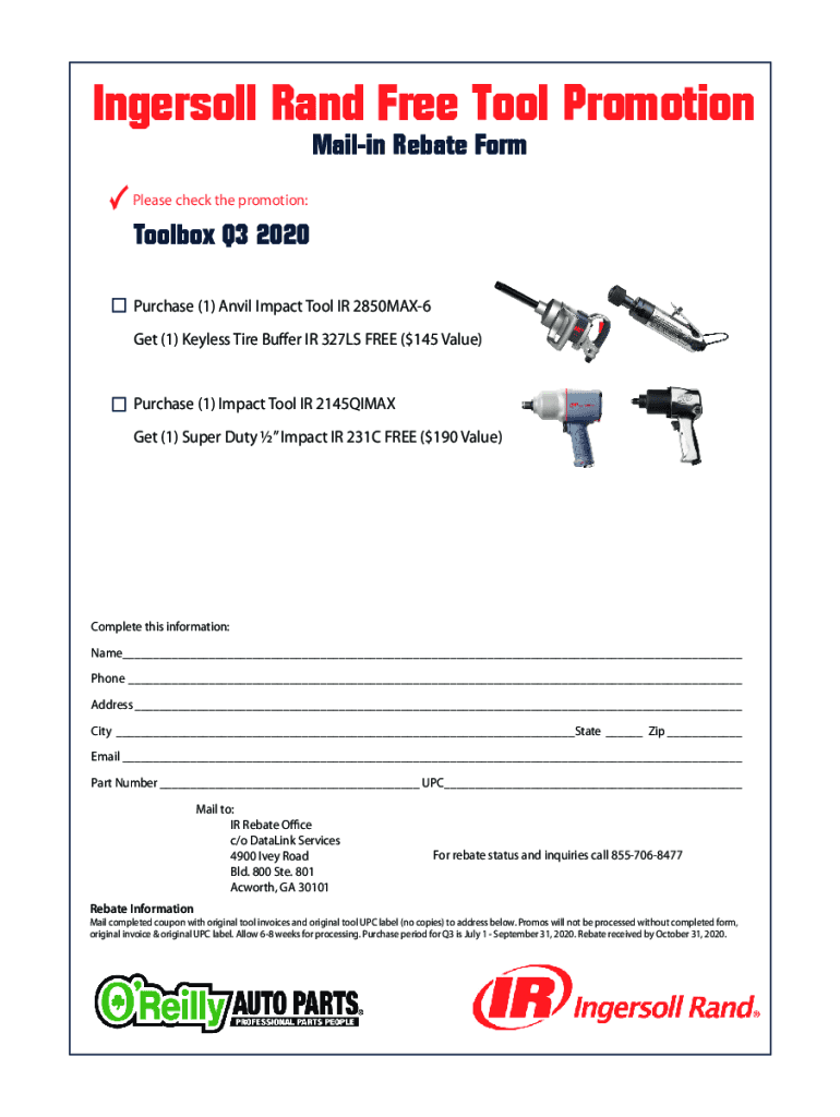 2527 NA Williams Q3 2020 IR Rebate form copy.pdf15/27/203:08 PM Ingersoll Rand Free Tool Promotion Mailing Rebate Formulas check the promotion:Toolbox Q3 2020 Purchase (1) Anvil Impact Tool IR 2850MAX6