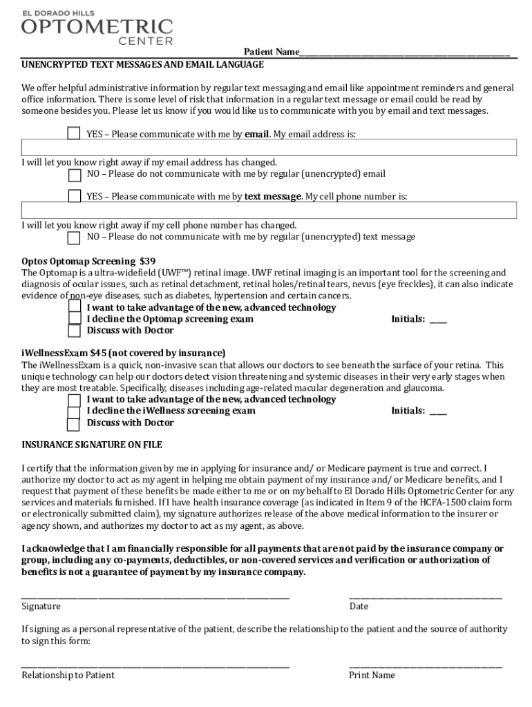 Patient Name UNENCRYPTED TEXT MESSAGES AND EMAIL LANGUAGE We offer helpful administrative information by regular text messaging and email like appointment reminders and general office information.