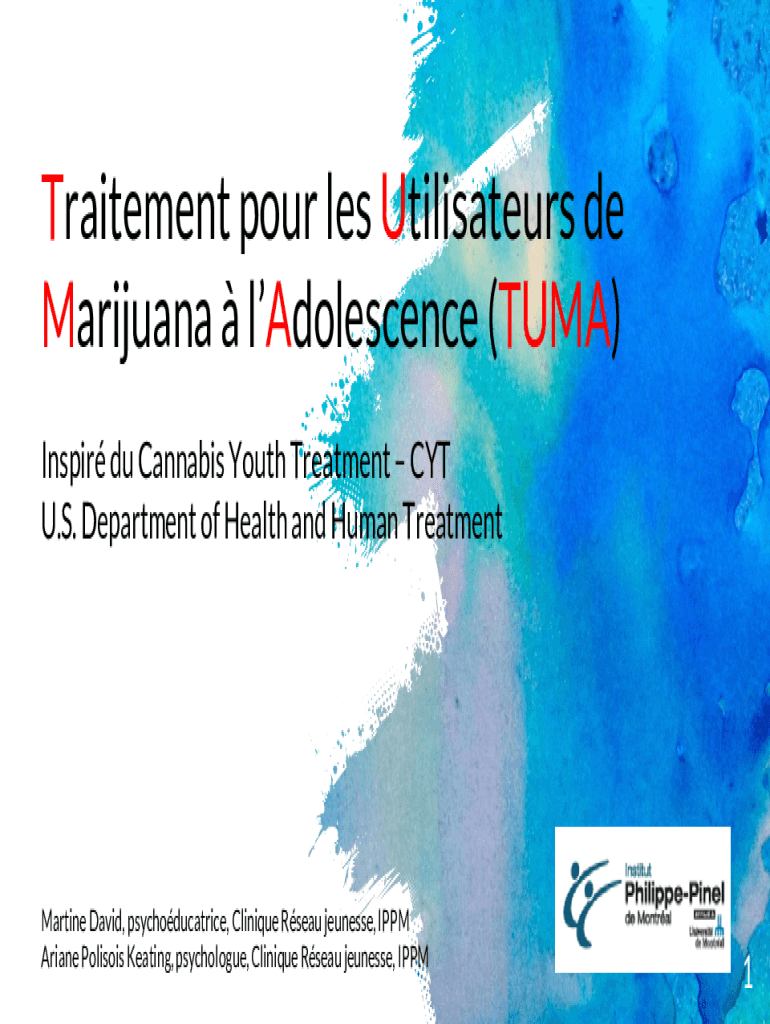Treatment pour LES Utilisateurs de Marijuana adolescence (TUNA) Inspire Du Cannabis Youth Treatment CYT U.S. Department of Health and Human TreatmentMartine David, psychoducatrice, Clinique Roseau