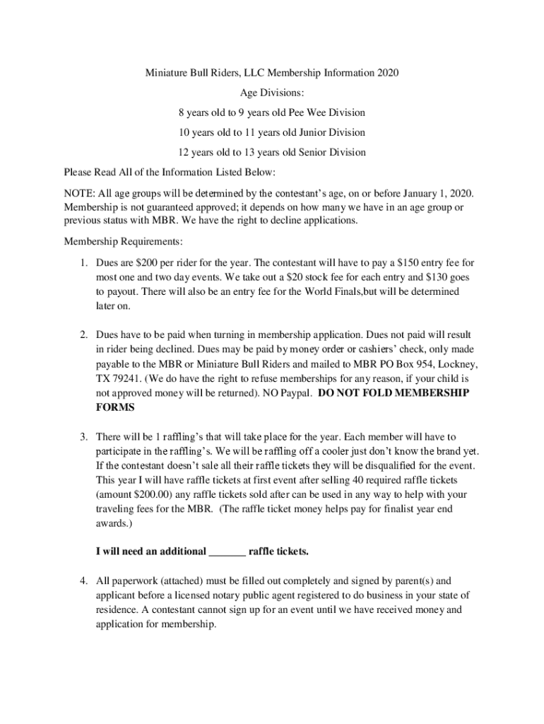 Miniature Bull Riders, LLC Membership Information 2020