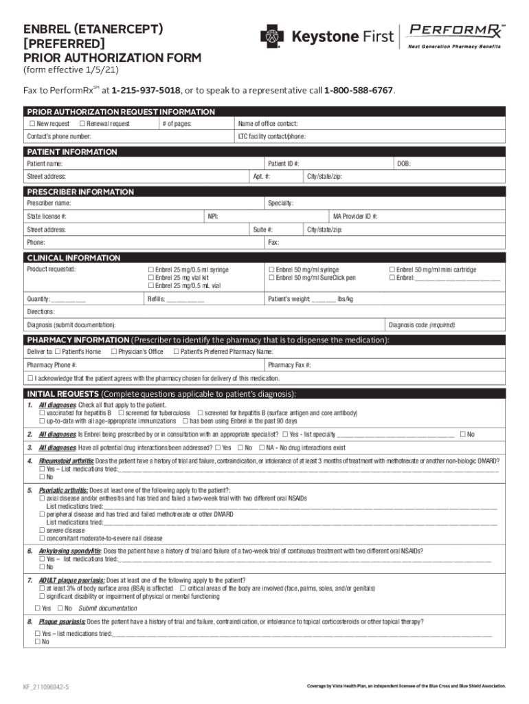 Get the free Enbriel Prior Authorization Form - Pharmacy - Keystone First. Enbriel Prior Authoriz...