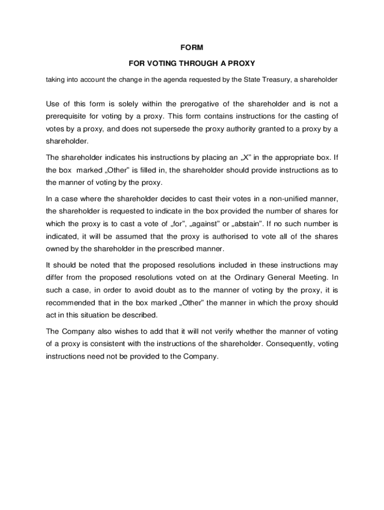 taking into account the change in the agenda requested by the State Treasury, a shareholder of this form is solely within the prerogative of the shareholder and is