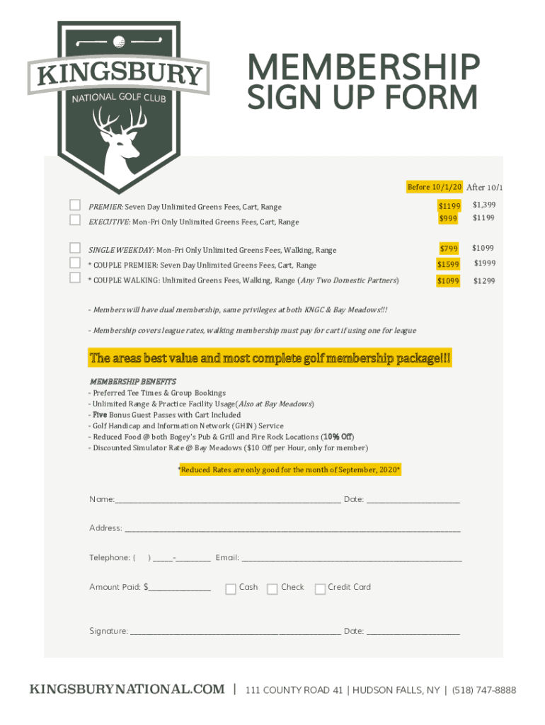 Email, fax, or share your kingsbury national membership form form via URL. You can also download, print, or export forms to your preferred cloud storage service.