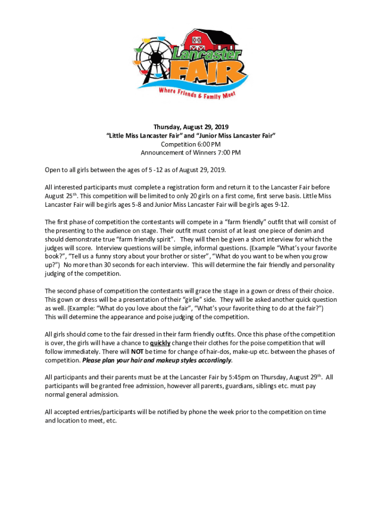 Get the free 2018 Little Miss Lancaster Fair Competition Info and Entry Form.docx
