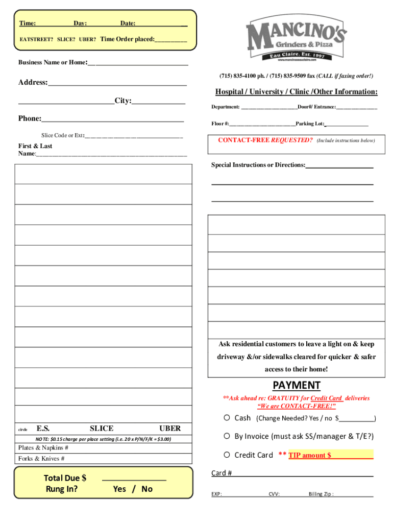 Get the free PDF PAYMENT - Mancinos Eau Claire