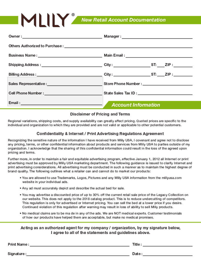 Business Name :Main Email :Shipping Address :City :ST:ZIP :Billing Address :City :ST:ZIP :Sales Representative :Store