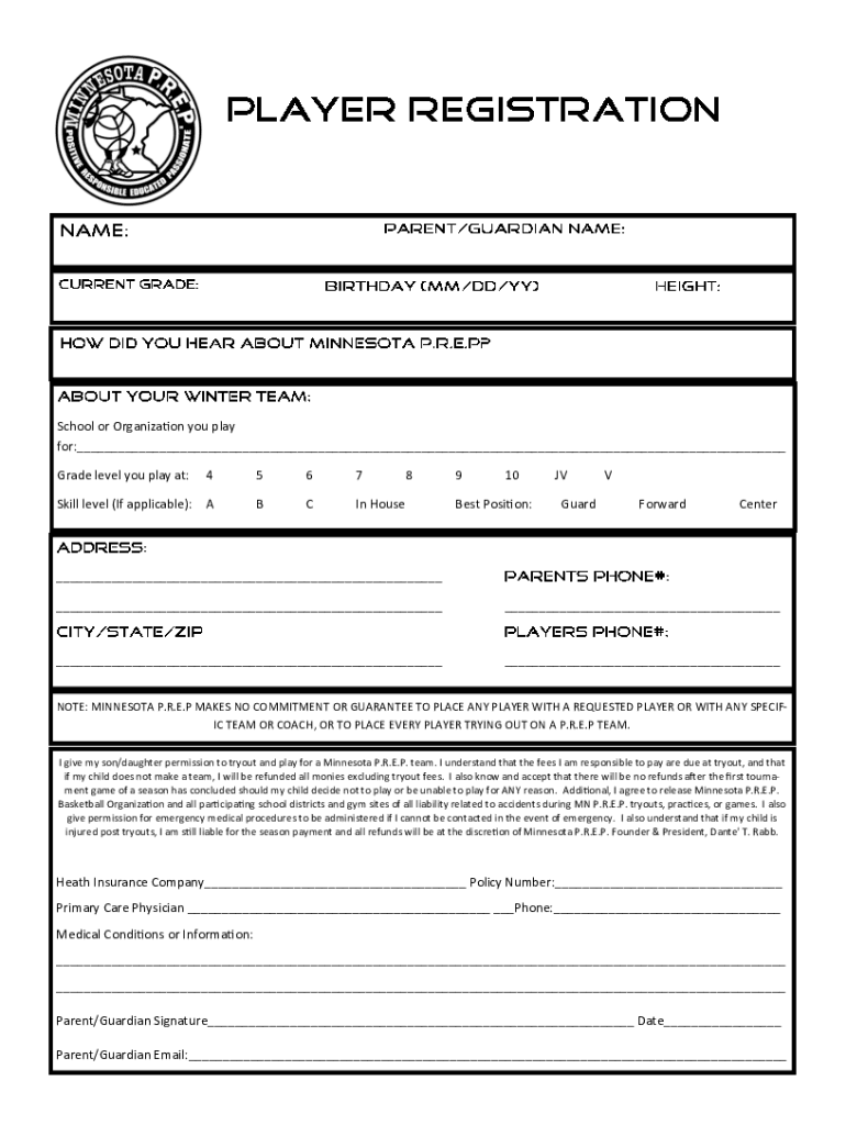 School or Organization you play for: Grade level you play at:4567Skill level (If applicable):ABC In House8910Best Position:JV Guard ForwardCenter NOTE: MINNESOTA P.R.E.P MAKES NO COMMITMENT OR GUARANTEE
