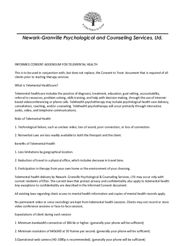 NewarkGranville Psychological and Counseling Services, Ltd. INFORMED CONSENT ADDENDUM FORT ELEMENTAL HEALTH