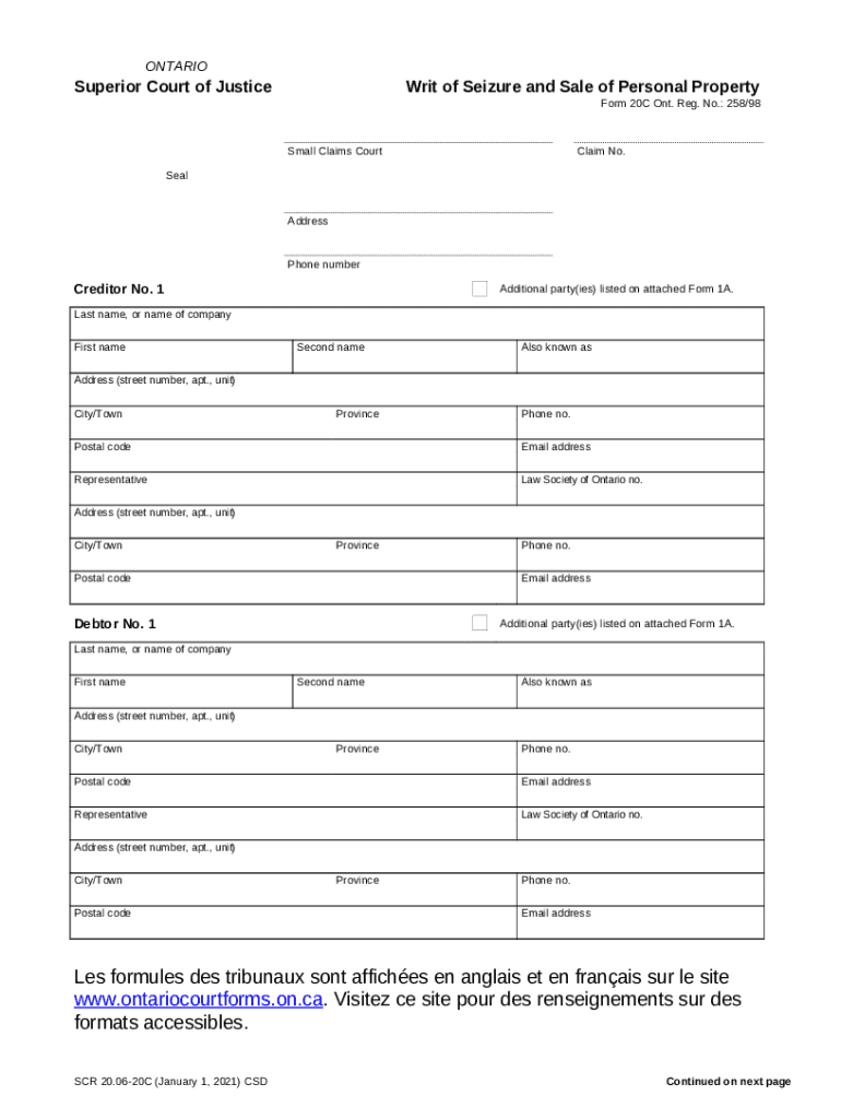 The SCR 20.06-20C - Ontario Court s - ontariocourts on is a Word document that should be submitted to the required address in order to provide certain information. It must be completed and signed, which may be done manually in hard copy, or by using a particular solution such as PDFfiller. It allows to fill out any PDF or Word document right in the web, customize it according to your needs and put a legally-binding electronic signature. Right away after completion, you can send the SCR 20.06-20C - Ontario Court s - ontariocourts on to the appropriate person, or multiple ones via email or fax. The blank is printable too due to PDFfiller feature and options offered for printing out adjustment. In both electronic and in hard copy, your form will have a clean and professional outlook. You can also save it as the template to use it later, there's no need to create a new file over and over. All you need to do is to customize the ready document.