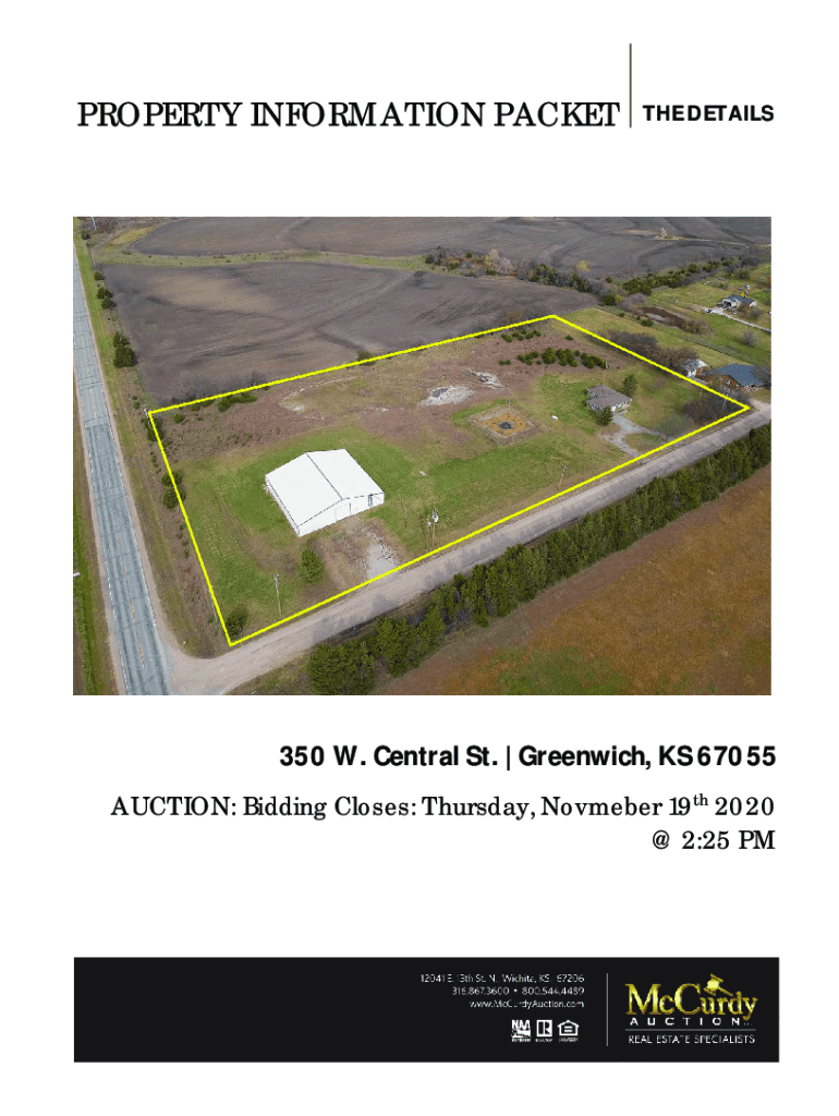 PROPERTY INFORMATION PACKETIZE DETAILS350 W. Central St. Greenwich, KS 67055 AUCTION: Bidding Closes: Thursday, November 19th 2020 2:25 Potable of Contents PROPERTY DETAIL PAGE SELLERS DISCLOSURE