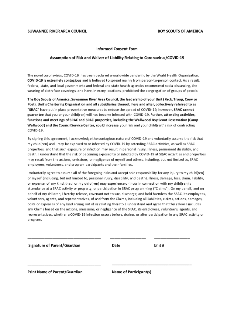 SUWANEE RIVER AREA COUNCILOR SCOUTS OF AMERICAInformed Consent Form