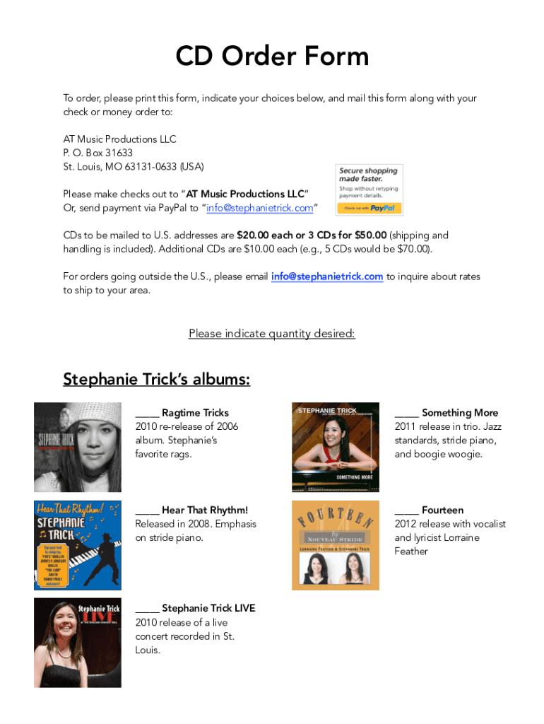 Get the free Double CD Order Form - Stephanie Trick