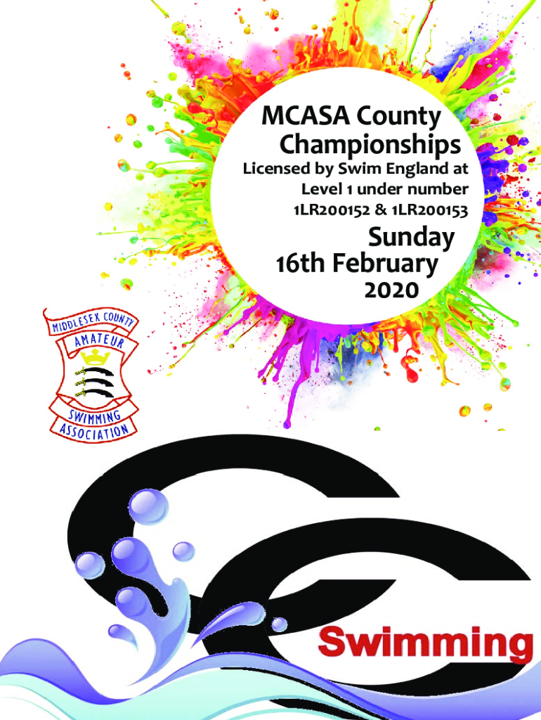 CASA County ChampionshipsLicensed by Swim England at Level 1 under number 1LR200152 & 1LR200153Sunday 16th February 2020The 2020 Middlesex County Championships Inclusive of Multi Classification Events