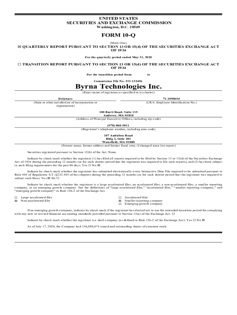 Byrna Technologies Inc can be filled out by providing all necessary financial information, corporate details, and any other required data as per the filing requirements.