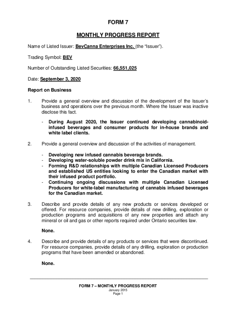 MONTHLY PROGRESS REPORT