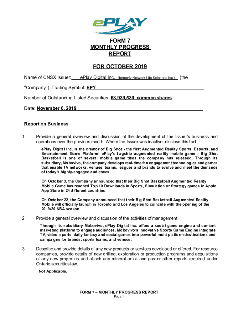 Name of CNS Issuer:play Digital Inc.(formerly Network Life Sciences Inc.)(company). Trading Symbol: SPY