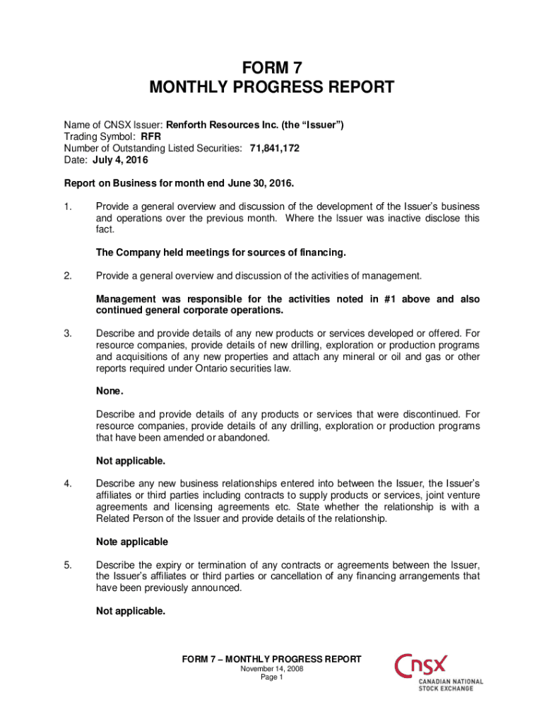 Name of CNS Issuer: Danforth Resources Inc. (the Issuer)