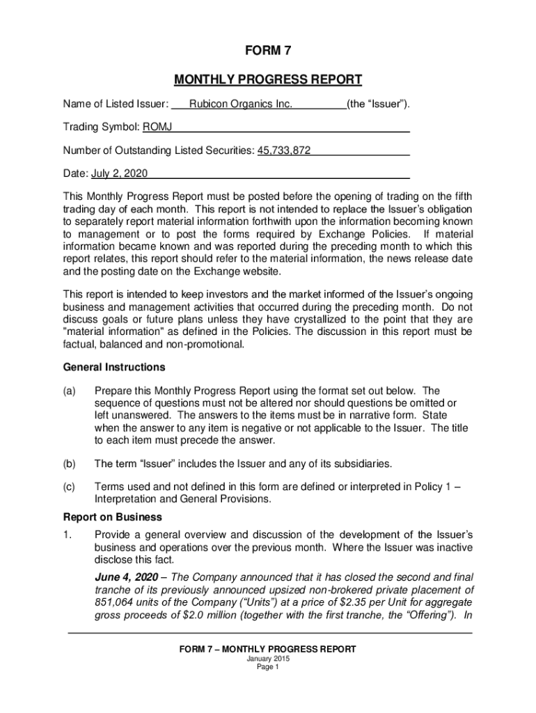 Name of Listed Issuer:Rubicon Organics Inc.(the Issuer). Trading Symbol: ROME