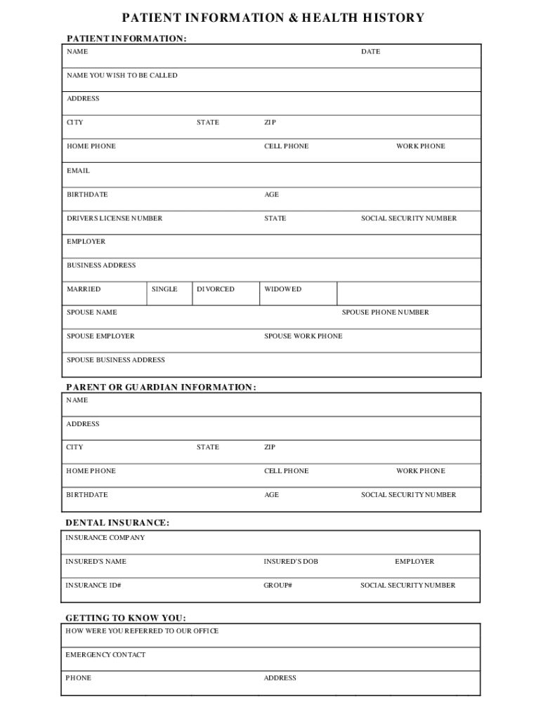 Patient information amp health includes personal details such as name, date of birth, medical history, allergies, current medications, and insurance information.