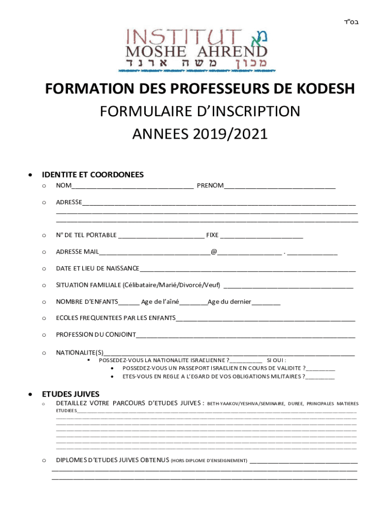 “FORMATION DES PROFESSORS DE KOD ESH FORMULA IRE INSCRIPTION ANNEXES 2019/2021 IDENTITY ET COORDINATES Odom PHENOM address on DE TEL PORTABLE FINE address MAIL. Date ET LIEU DE RENAISSANCE situation