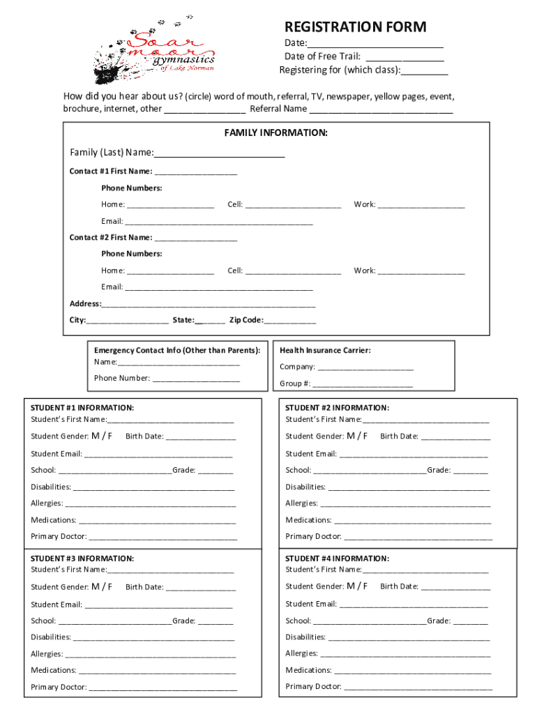 REGISTRATION FORM Date: Date of Free trial: Registering for (which class): How did you hear about us? (circle) word of mouth, referral, TV, newspaper, yellow pages, event, brochure, internet, other