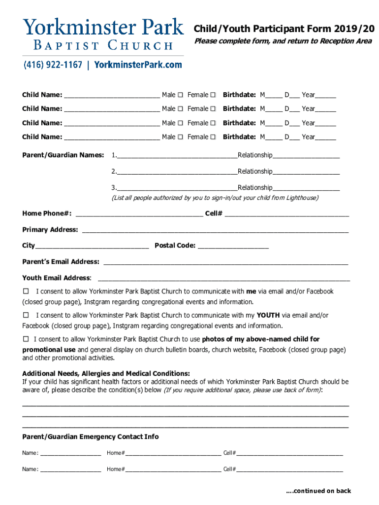 Get the free Online Child/Youth Participant Form 2017 Fax Email ...