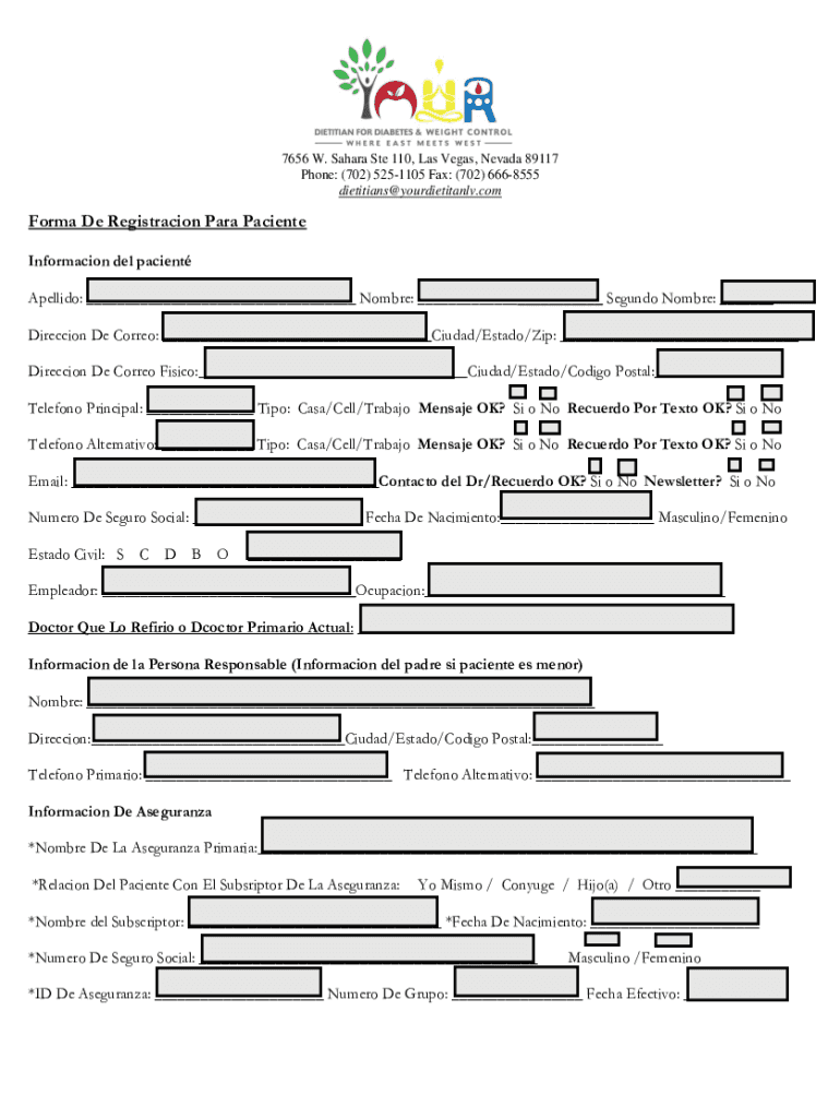 7656 W. Sahara Ste 110, Las Vegas, Nevada 89117 Phone: (702) 5251105 Fax: (702) 6668555 dietitians yourdietitanlv. Comfort DE Registration Para Patients Information Del patient Adelaide: Hombre: Segundo