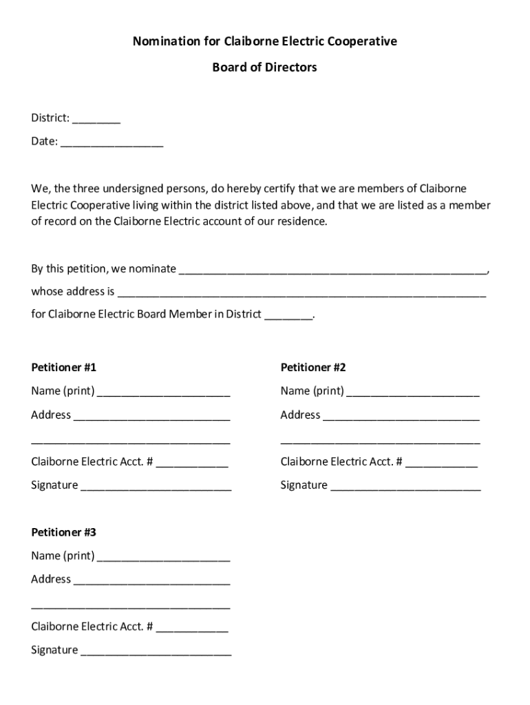 Get the free Nomination for Claiborne Electric Cooperative Board of Directors
