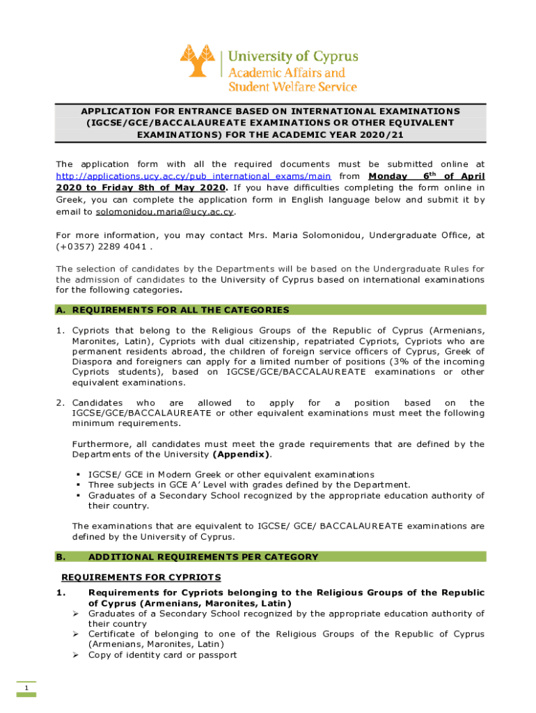 Get the free APPLICATION FOR ENTRANCE BASED ON INTERNATIONAL EXAMINATIONS ...