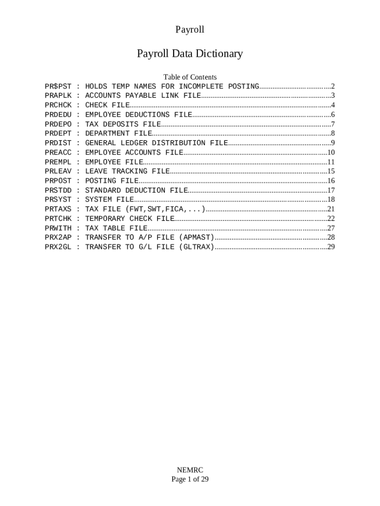 Payroll Data Dictionary - NEMRC: frequently asked questions