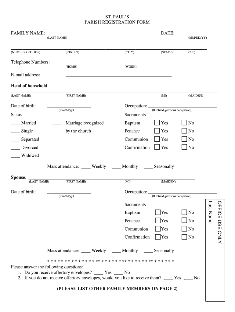 Get the free PARISH REGISTRATION FORM - stpaulsrcchurch