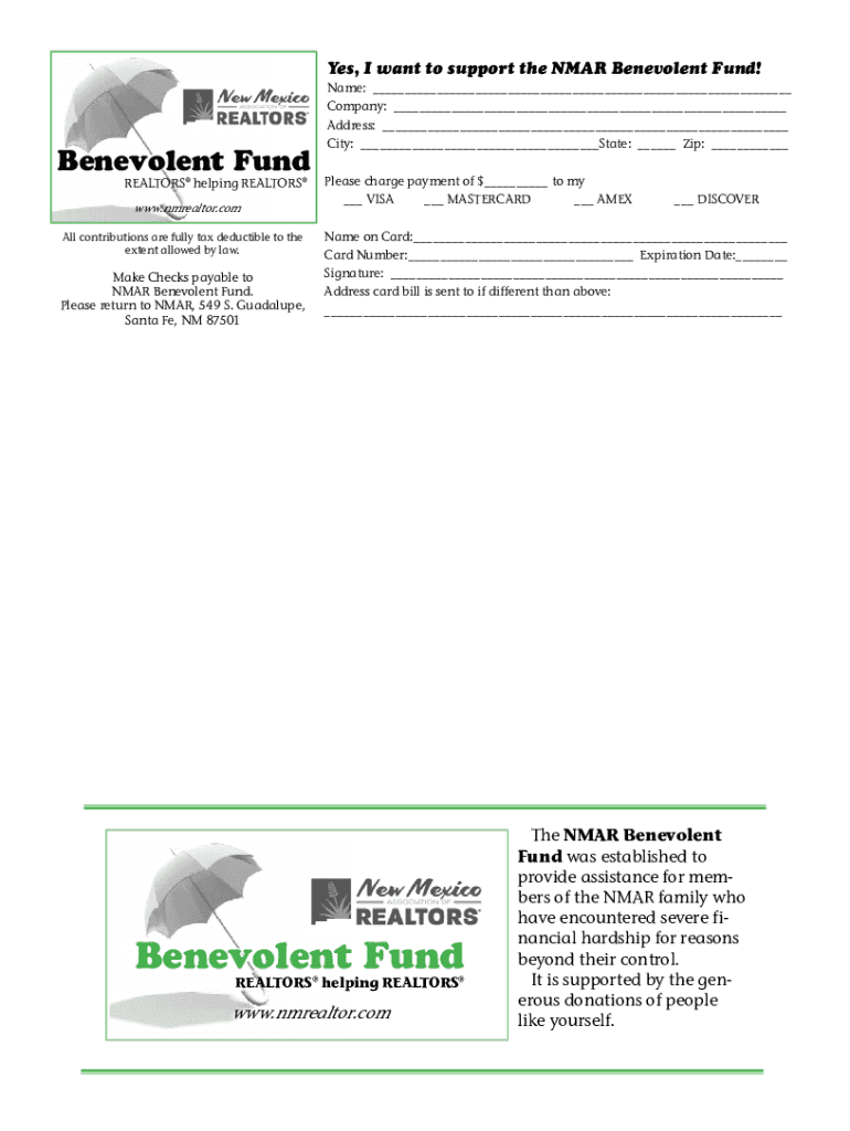 Get the free Yes, I want to support the NMAR Benevolent Fund!