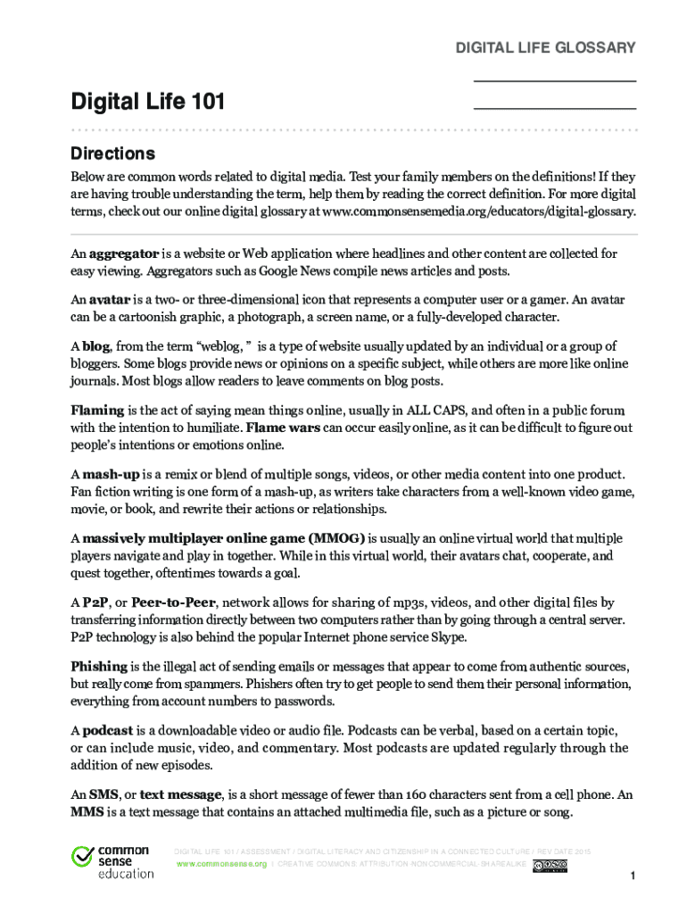 DirectionsBelow are common words related to digital media. Test your family members on the definitions! If they