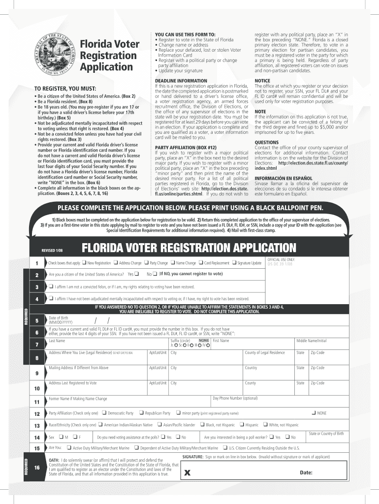 The Florida Voter Registration Application is a crucial document for Florida residents looking to participate in the democratic process. It serves as the official means for individuals to register to vote, update their voter information, or change their party affiliation. This application plays a significant role in ensuring that all eligible residents can exercise their right to vote.