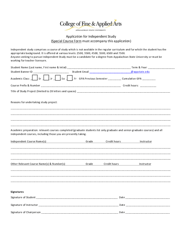 Get the free Application for Independent Study - Undergraduate Affairs - faa appstate