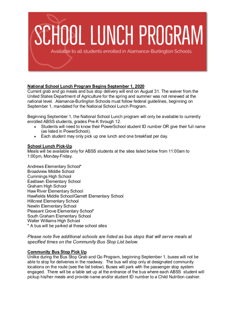 Current grab and go meals and bus stop delivery will end on August 31. The waiver from the
