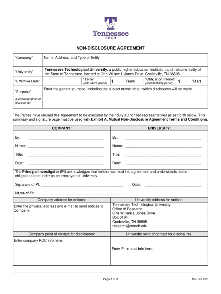 CompanyName, Address, and Type of EntityUniversityTennessee Technological University, a public higher education institution and instrumentality of