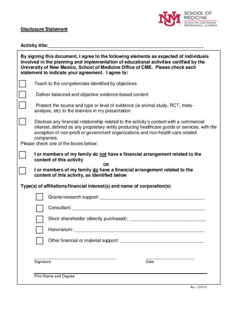 Get the free Disclosure Statement Activity title: involved in the planning ... - hsc unm