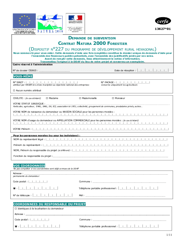 13627×01(DISPOSITIFDEMANDE DE SUBVENTION CONTRACT NATURAL 2000 FORESTIER N227 DU Program DE DEVELOPMENT RURALHEXAGONAL)Nous Somme l pour vows aider. Bette demanded aide one foil complete constitute
