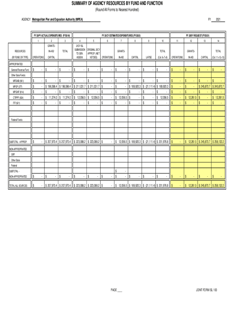 AGENCY Metropolitan Pier and Exposition Authority (MPA)FY 20PY ACTUAL EXPENDITURES (FY2019)