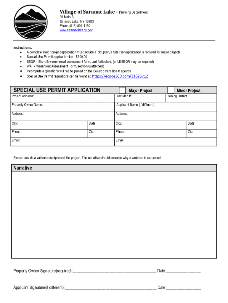 Village of Saran ac Lake Planning Department 39 Main St. Saran ac Lake, NY 12983 Phone (518) 8914150 www.saranaclakeny.govInstructions: A complete minor project application must include a plot plan,