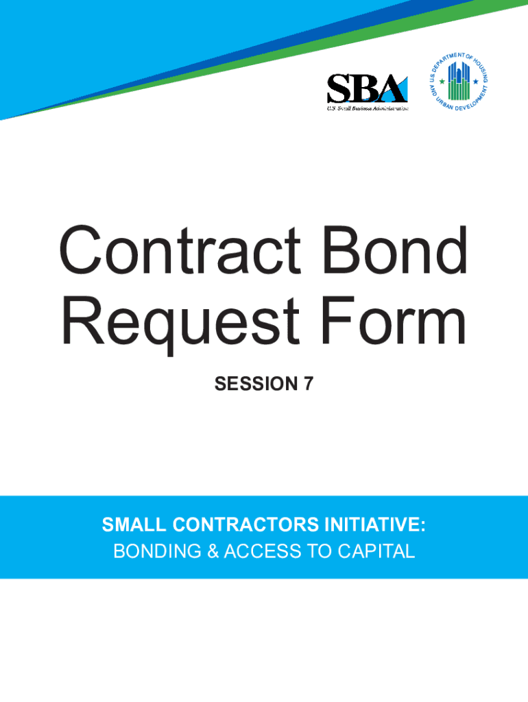 Contract Bond Request Form SESSION 7SMALL CONTRACTORS INITIATIVE: BONDING & ACCESS TO CAPITALCONTRACT BOND REQUEST FORM nasbp.org/toolkit To: From: Contractor: Today's Date: Obliged (Bond Payable